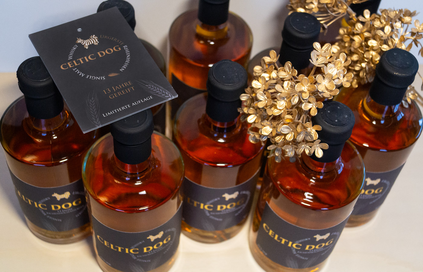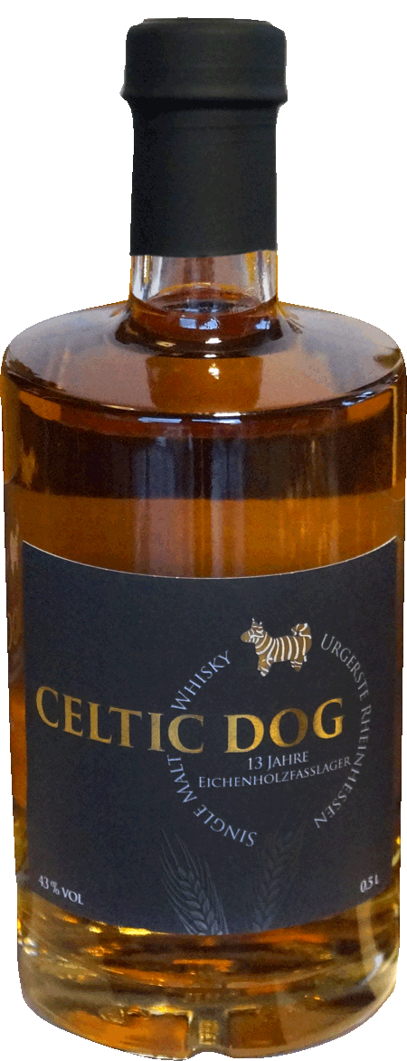 Zum ersten Mal ist Celtic Dog, der Single Malt aus Rheinhessen, 2016 in die Flasche gekommen. Seine rötliche Farbe fasziniert ebenso wie sein Duft und sein Geschmack! Von dieser ersten Abfüllung gibt es – Stand Herbst 2025 – nur noch einige wenige Flaschen.